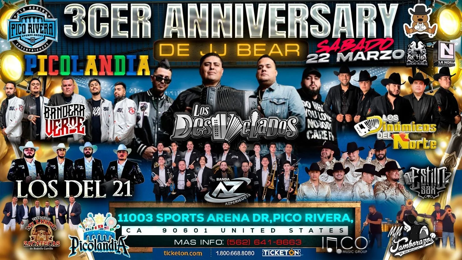 3ER ANNIVERSARY DE JJ BEAR Saturday, March 22, 2025 11:55 PM 11:55 PM Pico Rivera Sports Arena 11003 Rooks Road Whittier, CA, 90601 United States (map) Google Calendar ICS